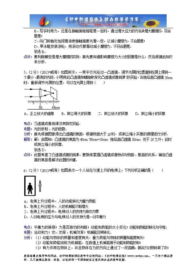 2.(2分)(2013•威海)当光从空气斜射到一块玻璃表面时,如图所示可以较全面地反映光传