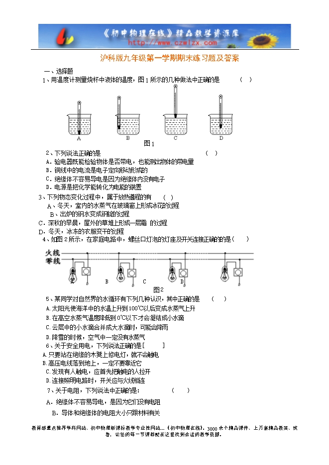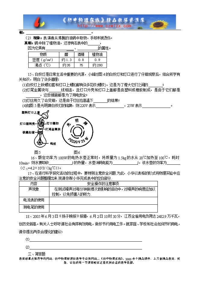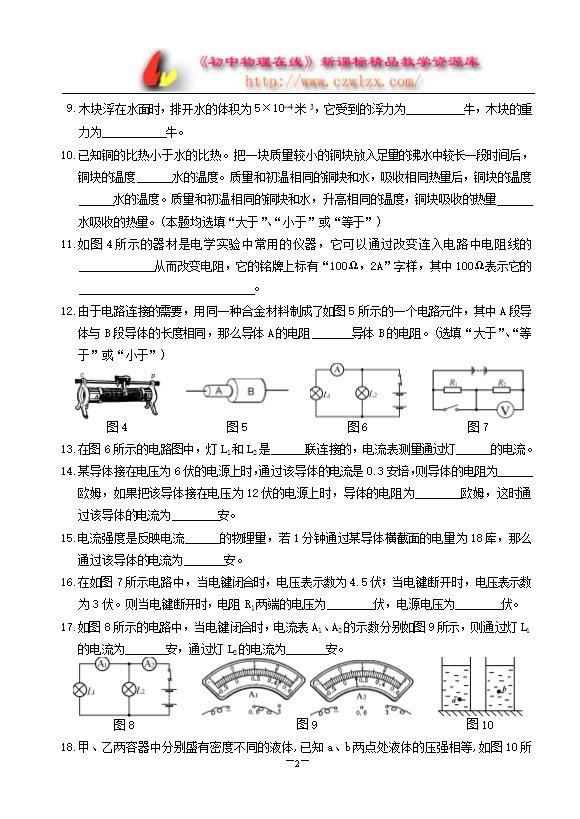 上海市浦东新区20校2005学年初三物理期末抽测及答案