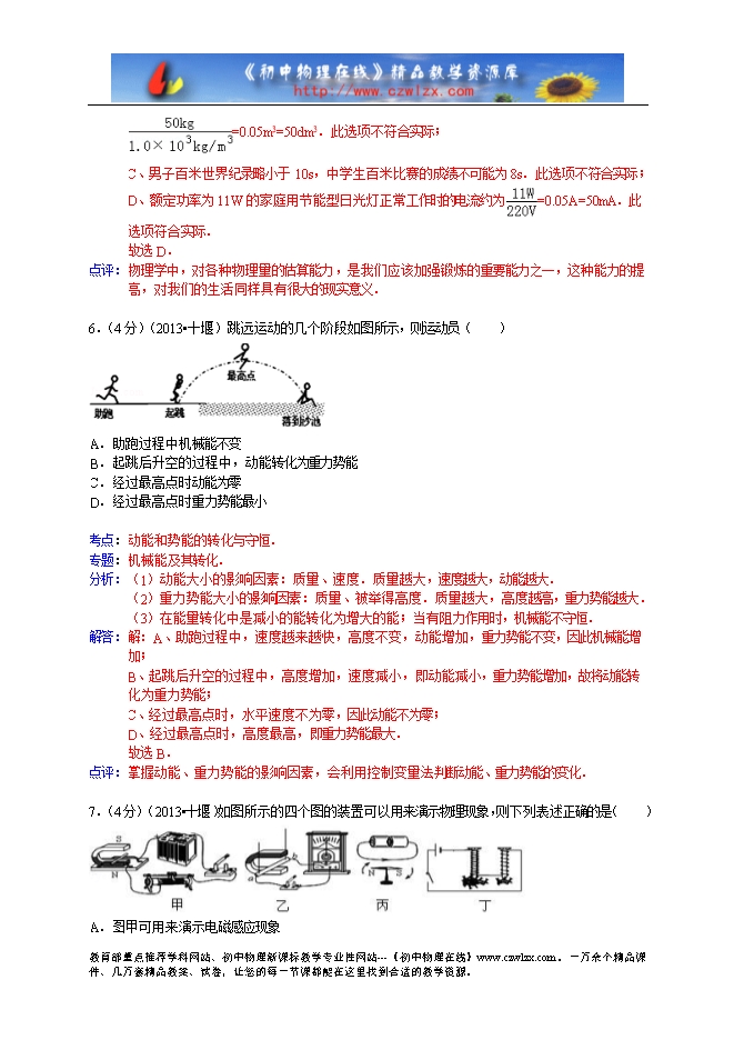 - 下一份试卷:湖北省荆州市2013年中考物理试题(word解析版)