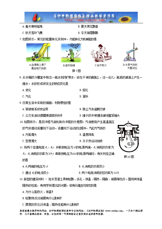 C.秋天落叶飞舞 D.冬天瑞雪飘飘