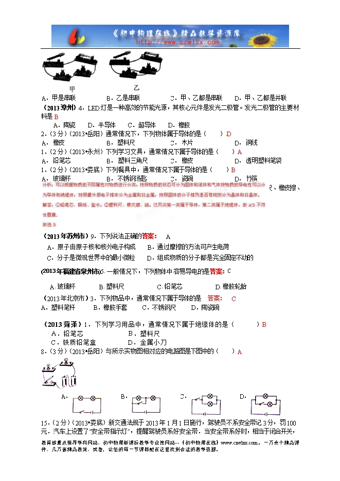 4.(3分)(2013?日照)用一根与毛皮摩擦过的橡胶棒靠近一轻质小球,发现两者互相排斥,由此可鉴定( )B