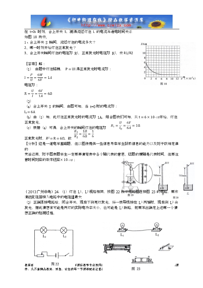 (2)如图 17 所示,把灯泡 L 与电压恒为 6V 的电源相接,