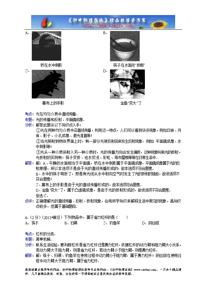 3.(2分)(2013•宿迁)下列图片中,属于光的直线传播现象的是( )