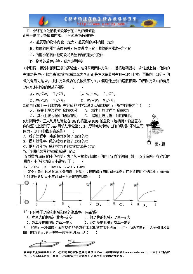 1.下图所示的用具中,属于费力杠杆的是 ( )