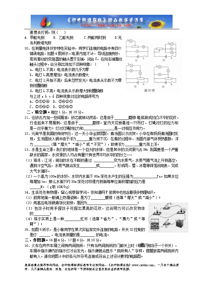 中垌中学2012年元旦物理竞赛试卷及答案