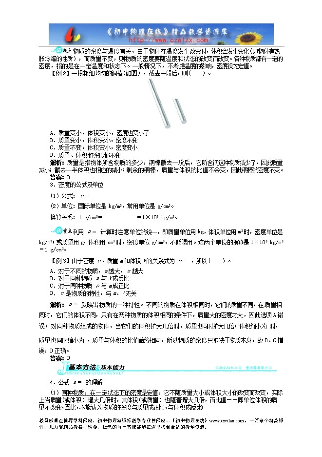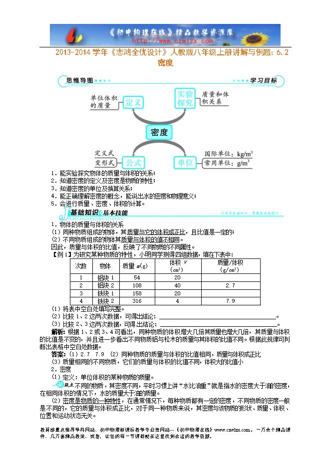 2013-2014学年《志鸿全优设计》人教版八年级上册讲解与例题:6.2密度