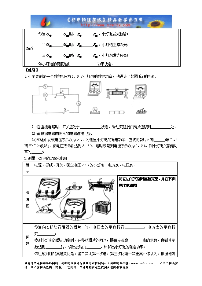 2013新人教版九年级物理《18.3测量小灯泡的电功率》学习笔记