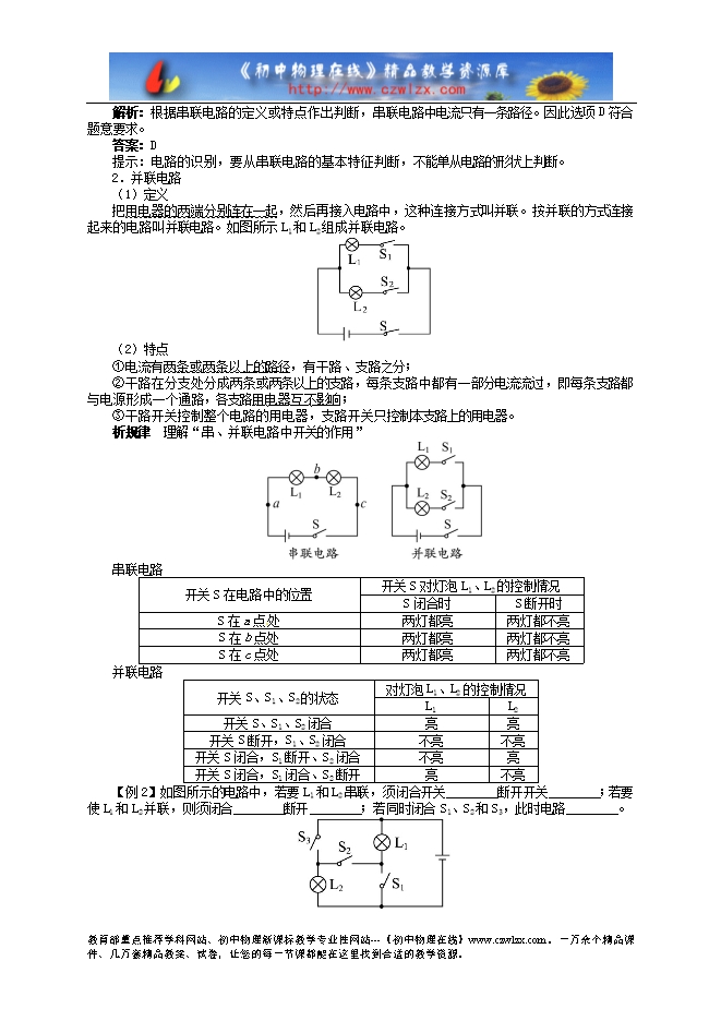 《志鸿全优设计》2013新沪科版《14.3连接串联电路和并联电路》讲解与例题