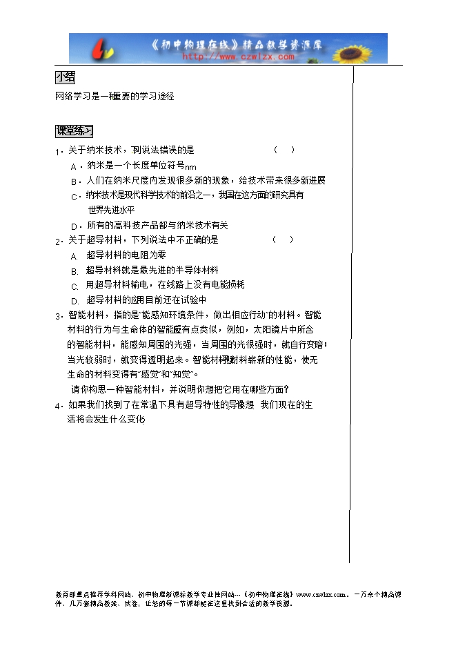 1. 初步了解纳米材料、半导体材料、超导材料、隐性材料的一些特
