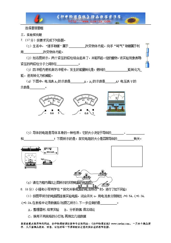 - 1433安庆市20校2016-2017学年度第一学期期中联考九年级物理试题及答案