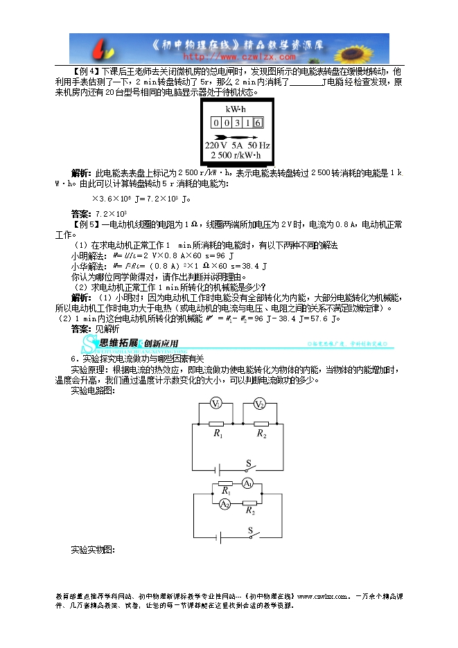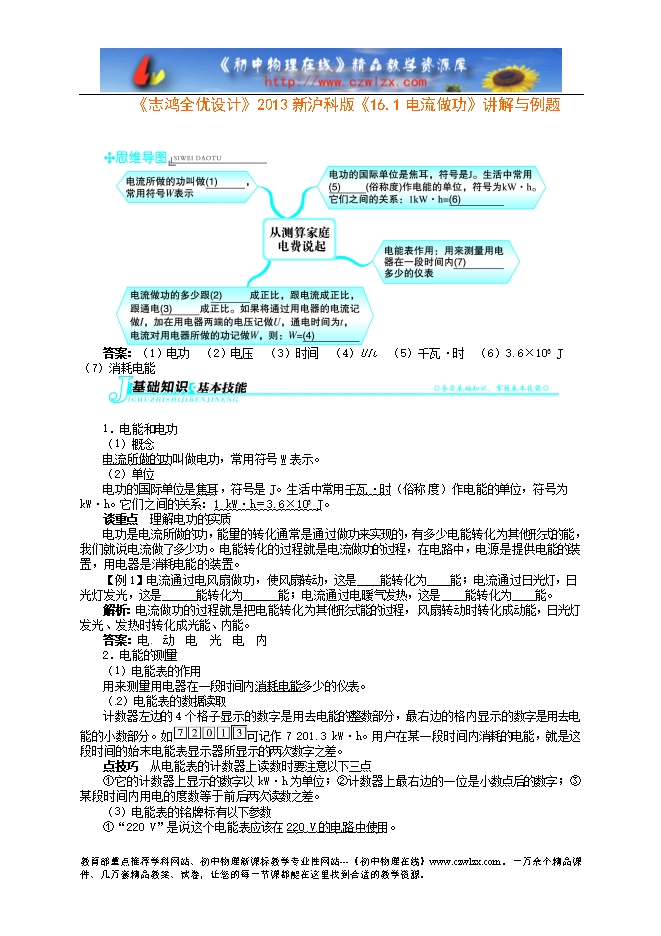《志鸿全优设计》2013新沪科版《16.1电流做功》讲解与例题