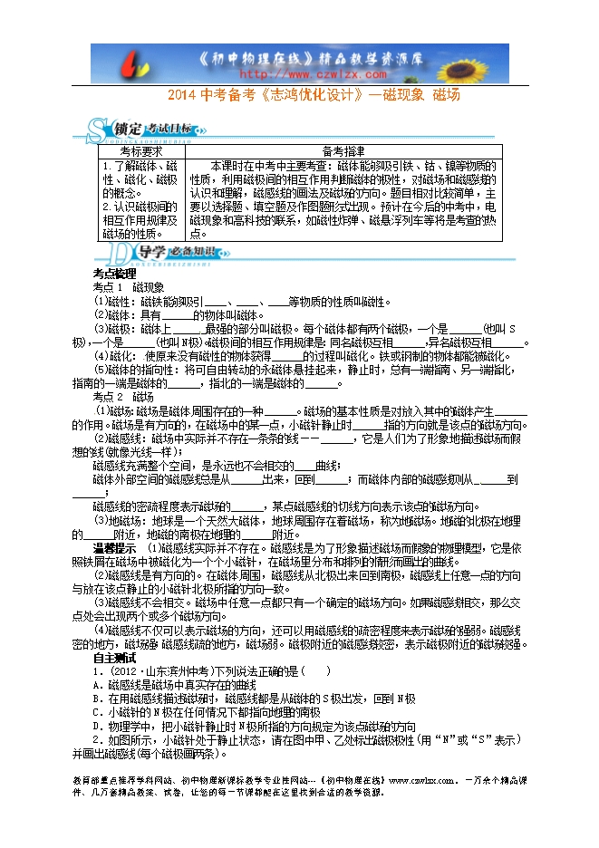 2014中考备考讲义《志鸿优化设计》--磁现象 磁场