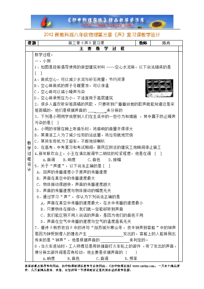 2012新教科版八年级物理第三章《声》复习课教学设计