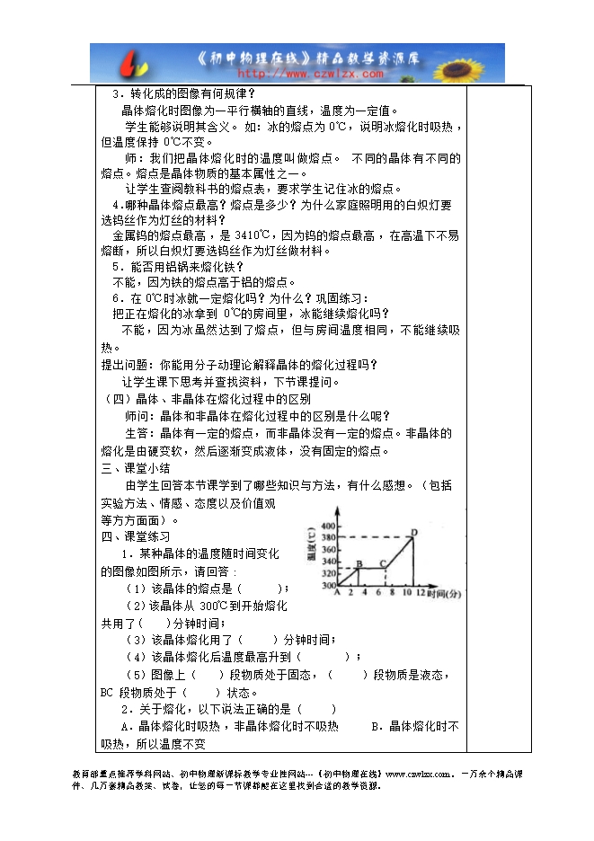 师问:那么,非晶体的外观特点是什么呢?生活中哪些固体是非晶体呢?