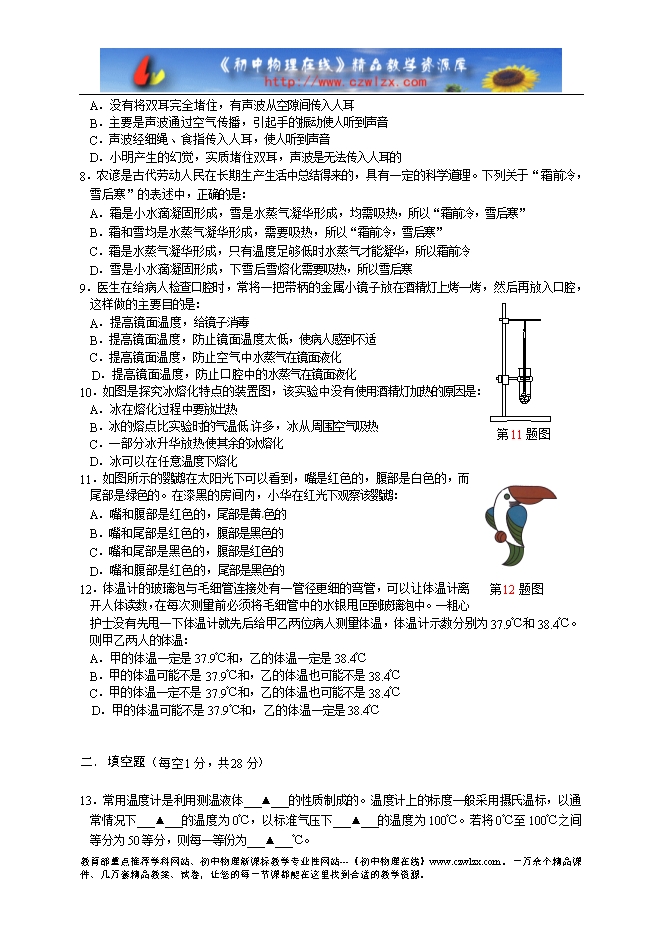 - 1144吉林省名校调研卷系列(省命题A)2019-2020学年 八年级上学期期中考试物理试题及答案