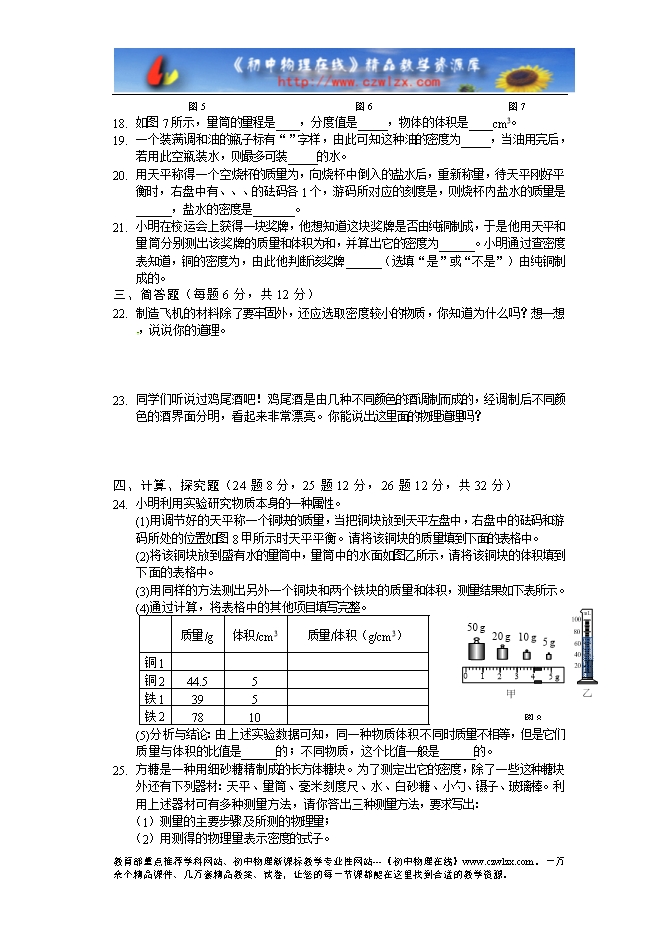 沪科版【中学教材全解】2013-2014学年八年级《第五章 质量与密度》检测题及解析