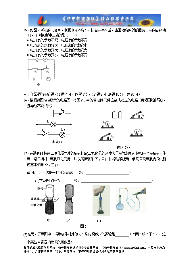 7、甲、乙 、丙三个轻质小球,已知甲带负电。甲和乙互相吸引,丙和甲互相排斥,则