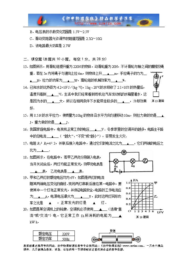 南京市高淳区2013~2014学年度第一学期期末质量调研检测九年级物理试卷及答案