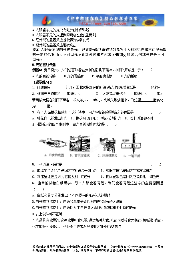 例题2:下列关于太阳光的说法中,正确的是 ( )