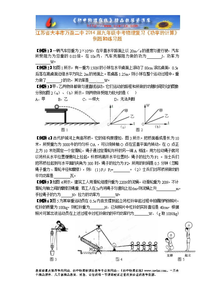 江苏省大丰市万盈二中2014届九年级中考物理复习《功率的计算》例题和练习题