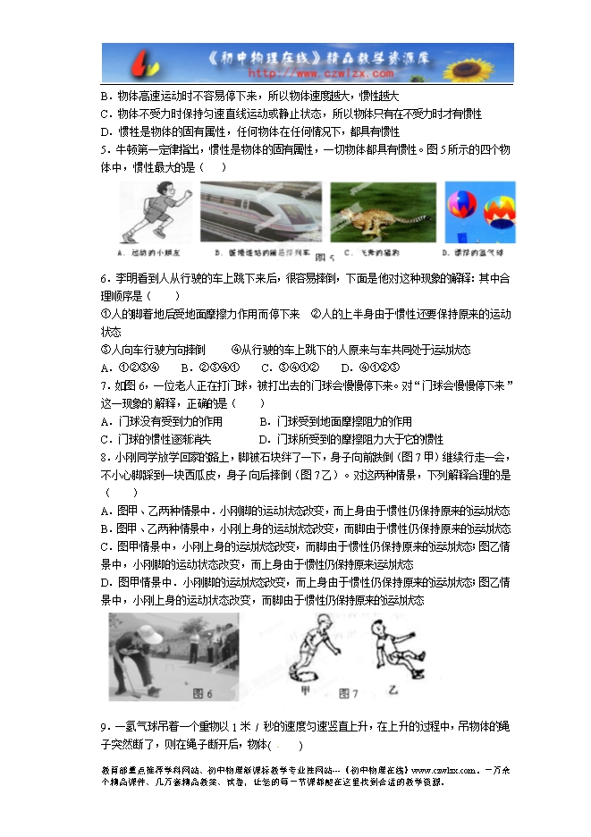 1.惯性:物体保持运动状态不变的性质叫惯性。