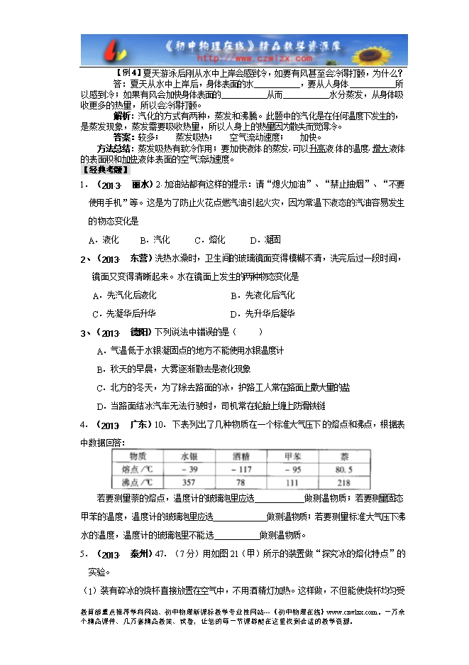 2014届中考物理专题讲解:第三讲 物态变化(含2013年新题)