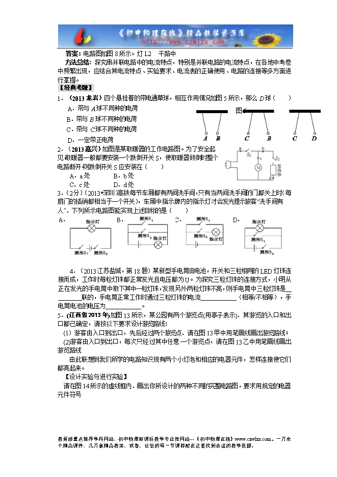 2014届中考物理专题讲解:第十五讲 电流和电路(含2013年新题)