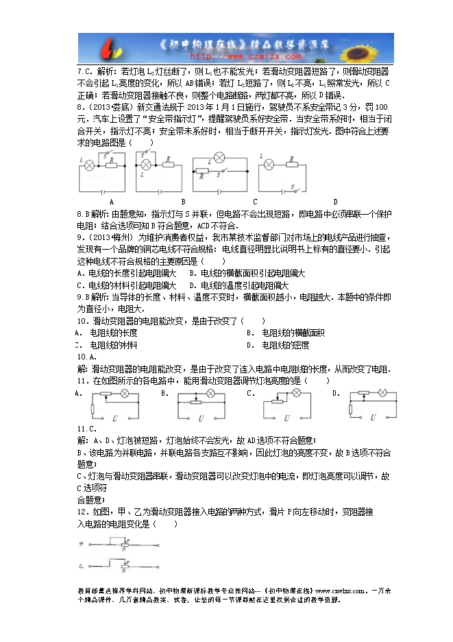 【内容简介】1.(2013?烟台)如图所示的电路中,电源电压不变,闭合开关S,电路正常工作,过了一会儿,灯L突然变亮.两电表示数都变大,则该电路中出现的故障可能是( )
