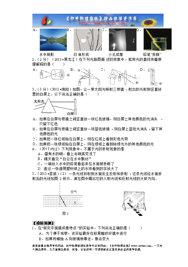 2014届中考物理复习专题讲解:第四讲 光现象(含2013年中考题)