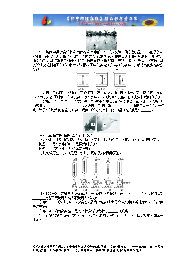 【志鸿优化设计】2013-2014学年新人教版八年级物理《第十章 浮力》单元综合检测题及解析