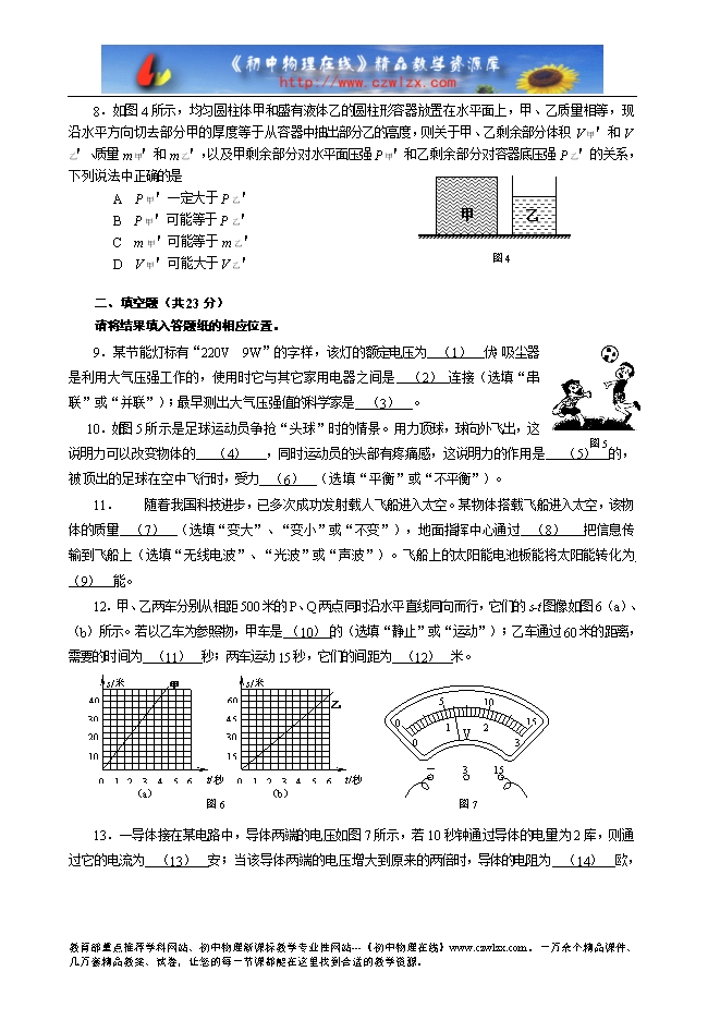1.本试卷物理部分含五个大题。