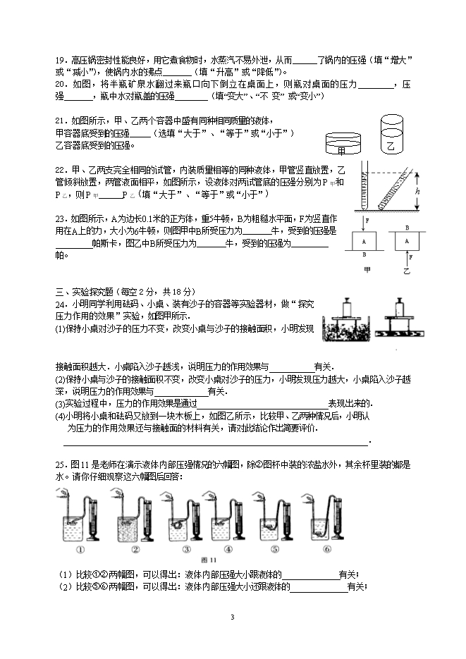 2014年八年级物理第二学期第九单元《压强》测试题及答案