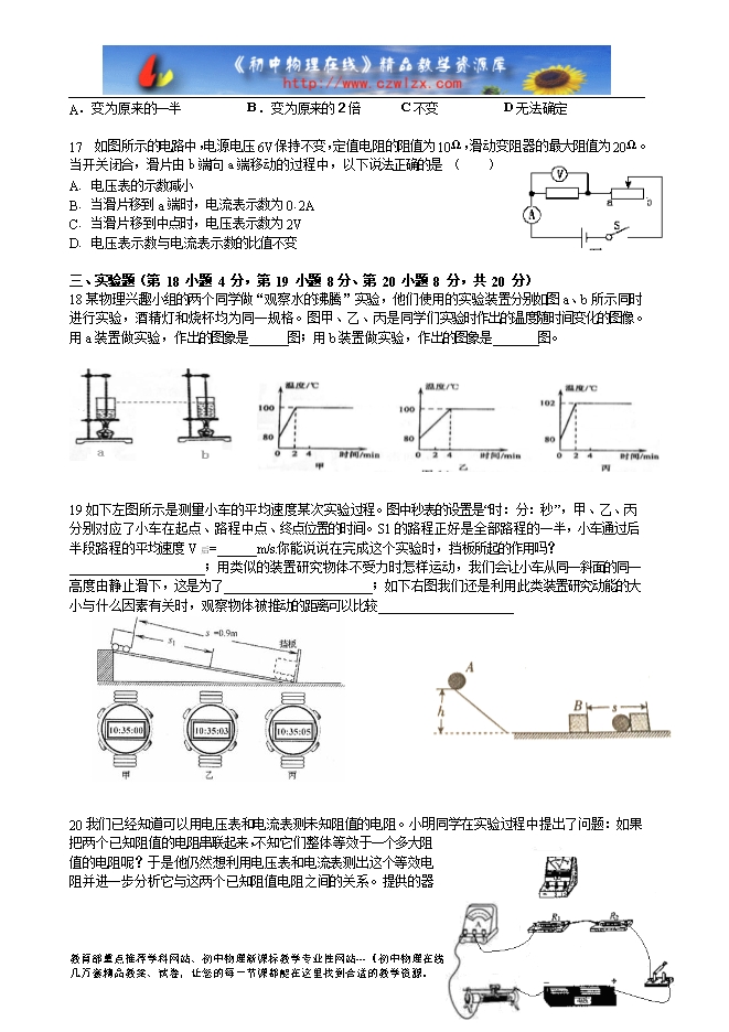 注意事项:1.本卷共四大题23小题,满分90分。物理与化学的考试时间共120分钟。