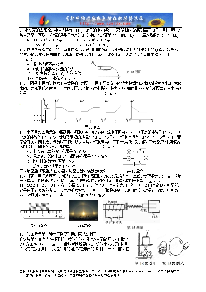 江苏省镇江市2014年中考网上阅卷答题卡模拟训练物理试题及答案