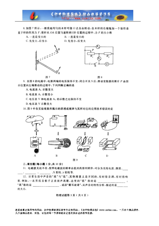 山东省烟台市2014年中考物理试题及答案(扫描版)