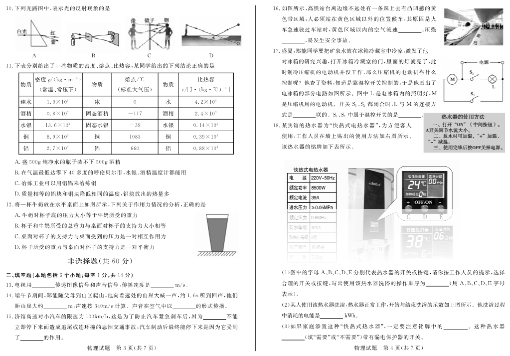 山东省聊城市2014年中考物理试题(pdf版,含答案)