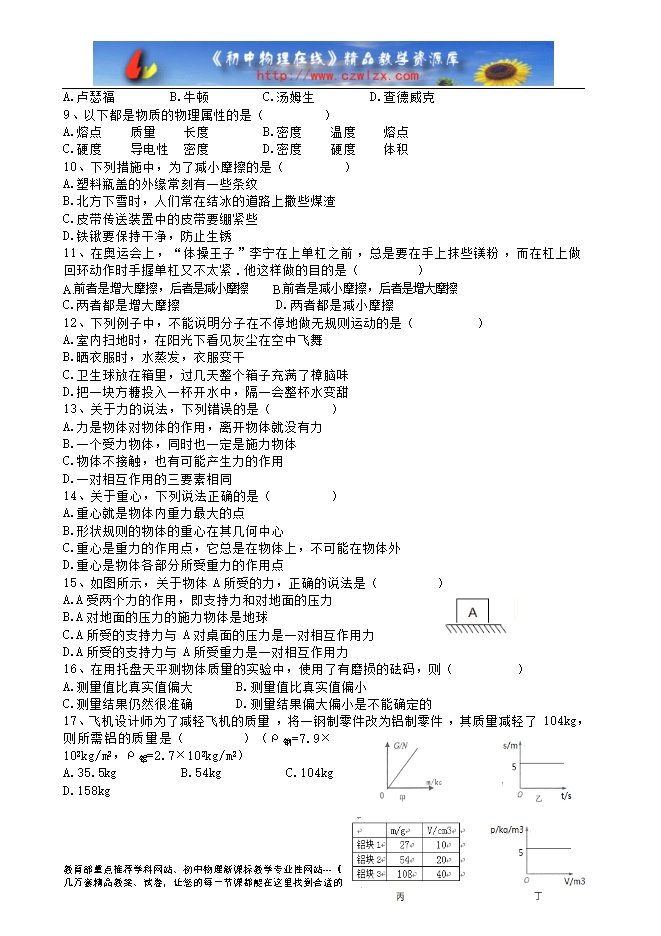 A.铝合金 B.橡胶 C.干木材 D.陶瓷