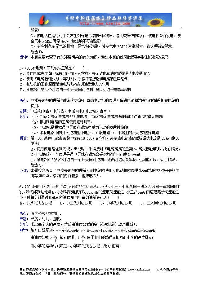 2.(2014•荆州)关于生活中常见的和“影”字有关的物理现象,下列说法中正确的是( )