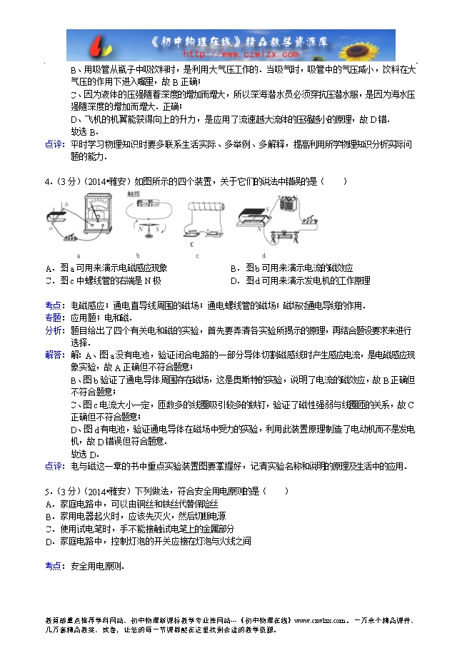 四川省雅安市2014年中考物理试题(word解析版)
