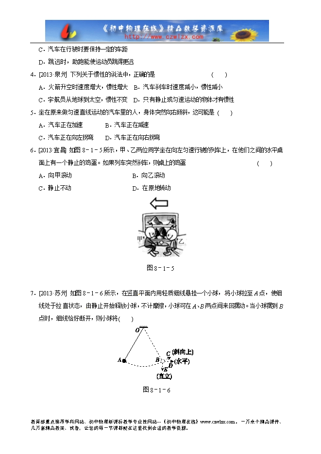 4.[2013?泉州] 下列关于惯性的说法中,正确的是 ( )