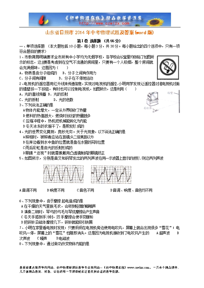 1、市教育局明确要求全市所有中小学均为无烟学校,各学校会议室里均张贴了如图所示的标志,这主要是考虑到在空气不流通的房间里,只要有一个人吸烟,整个房间就会充满烟味,这是因为( )