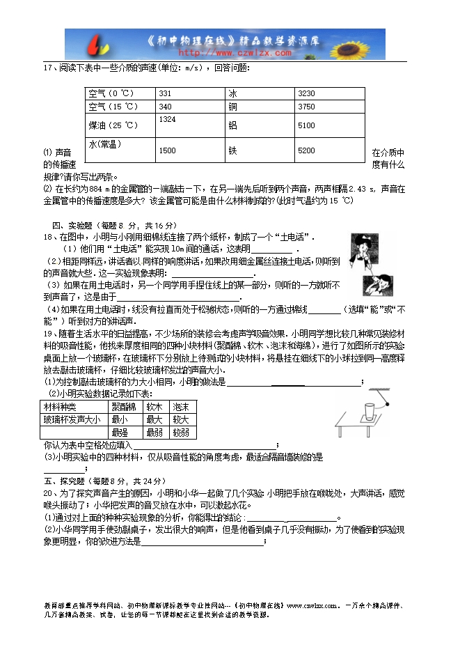 3、小满用手机往家里打电话。他听出是妈妈在接电话,主 要是依据声音的 不同来判断的。妈妈让他说话大声些,这是要求增大声音的