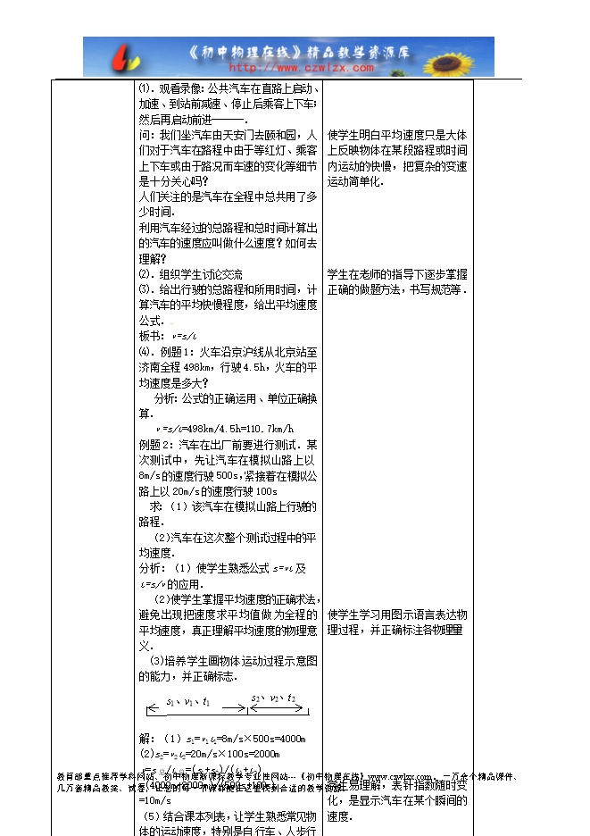 ②初步了解平均速度是表示物体在某一段时间内或某一段路程内的平均快慢程度;