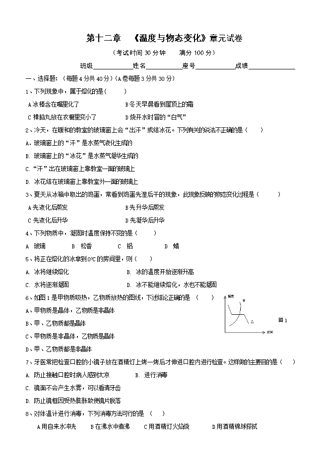6、如图1是甲物质吸热,乙物质放热的图线,下述结论正确的是 ( )