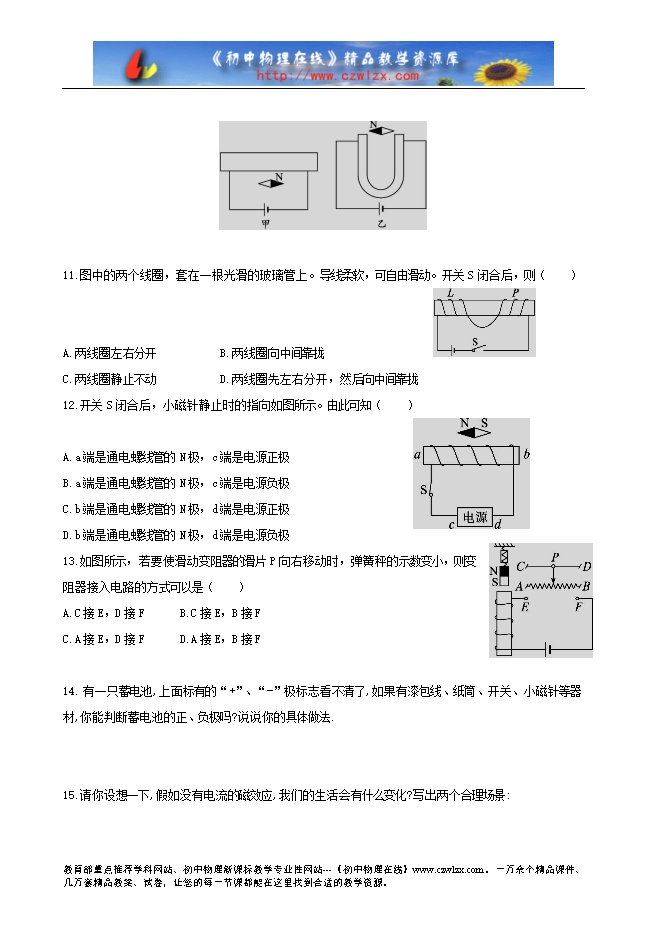 1.检验某物体是否有磁性以及电流的周围是否有磁场,常用的器材是 ,依据是_______________________________。