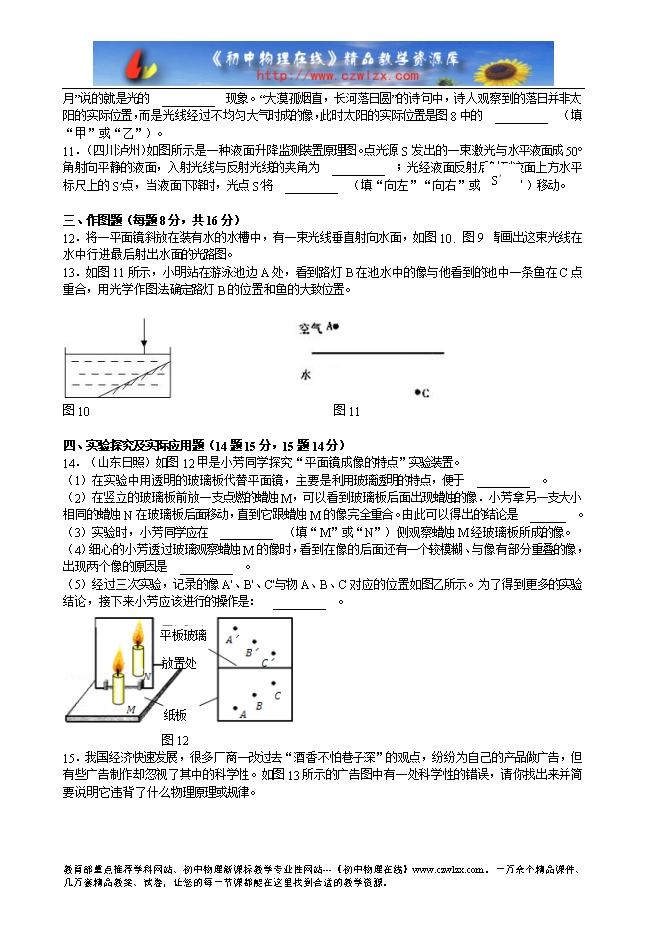 (2014秋开学)人教版物理八年级《第四章 光现象》单元测试卷及答案