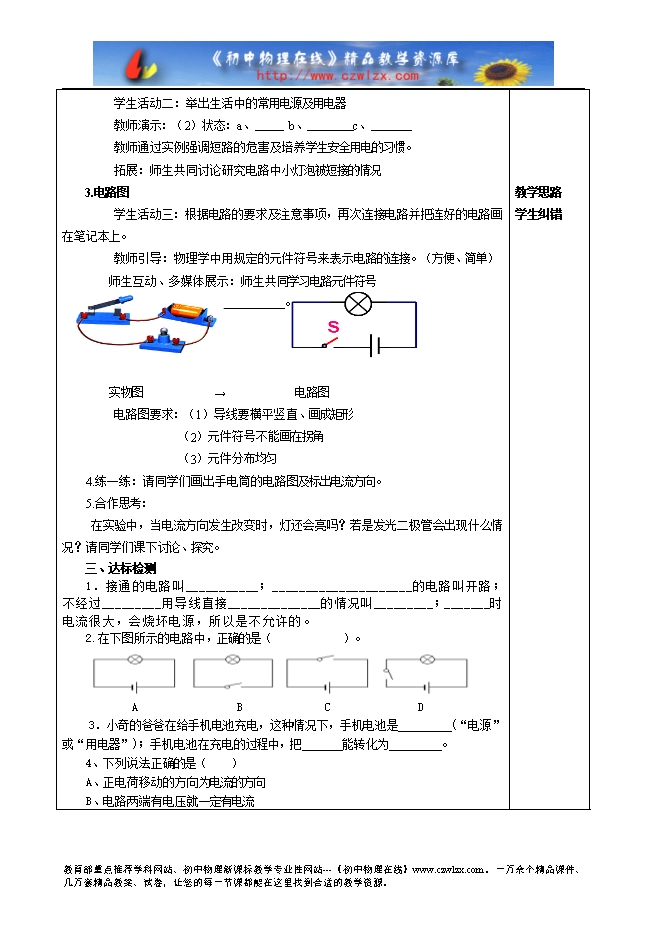 ② 知道电路有哪些部分组成和各部分作用是什么? 电流形成的条件是什么?