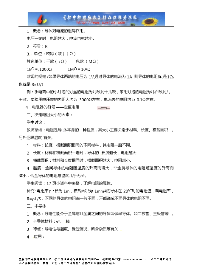 - 1345【教学课件】人教版九年级物理 第十六章 电压 电阻 第3节 电阻 精品课件与配套教案