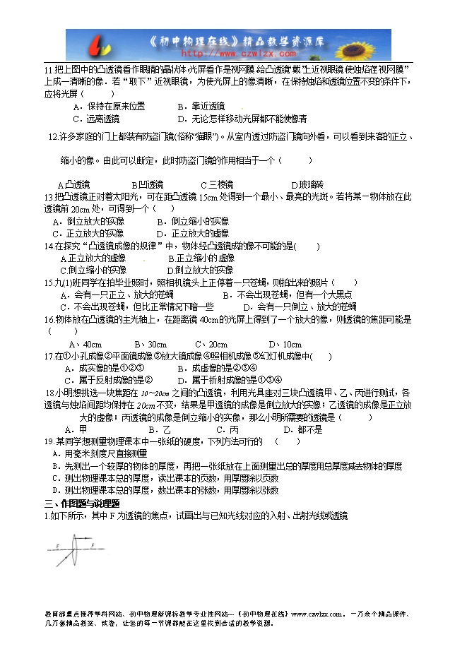 3.小华将凸透镜正对太阳光,在另一侧距地面5cm的地方呈现出最小极亮的一点,则f= cm,如果要在凸透镜另一侧的光屏上得到一个倒立、放大的实像,应把物体放在距凸透镜 范围内;如果将它作为放大镜使用,应把物体放在距凸透镜 .