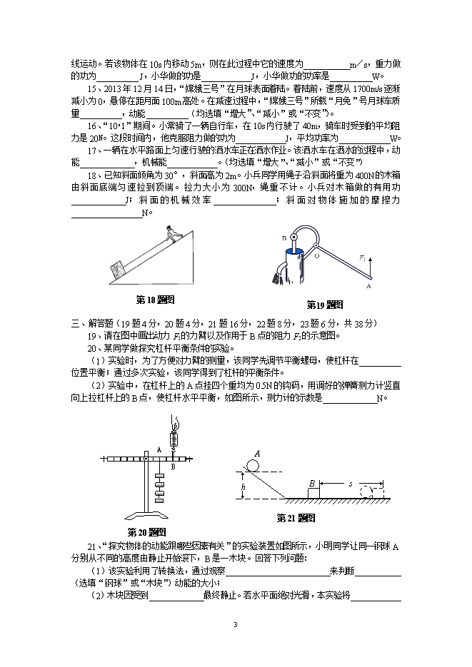 2014-2015学年度第一学期杨屯中学九年级物理第一次月考试卷(简单机械和功)(苏科版附答案)